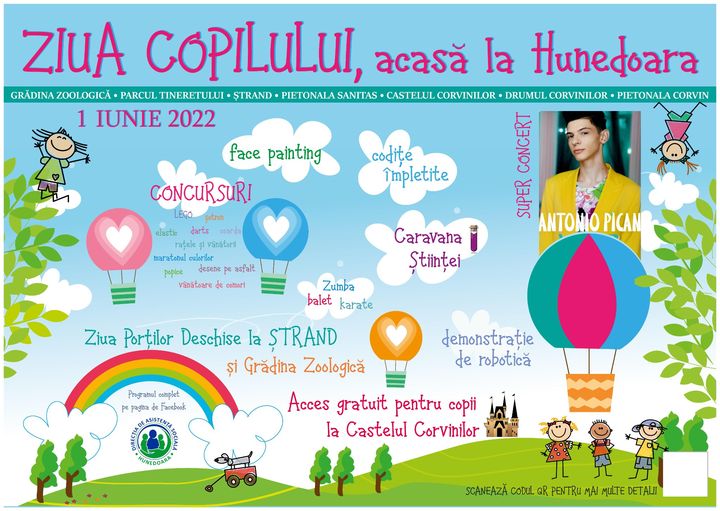 Programul evenimentului organizat de Direcția de Asistență Socială Hunedoara în colaborare cu Primăria municipiului Hunedoara, Grădina Zoologică, Ștrandul Corvina și Castelul Corvinilor cu ocazia zilei de 1 iunie 2022.
