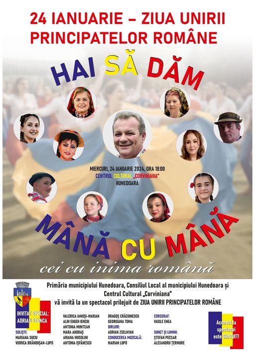 Spectacol folcloric extraordinar cu ocazia Zilei Unirii Principatelor Române la Centrul Cultural Corviniana - Casa de Cultură din Hunedoara.