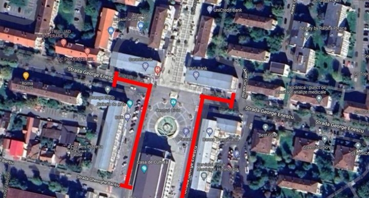 Pe strada George Enescu, de la intersecţia cu b-dul Republicii până la fostul sediu Banc Post, respectiv de la intersecţia cu str. Ion Creangă până în dreptul Agenţiei Loto accesul va fi permis doar riveranilor.
