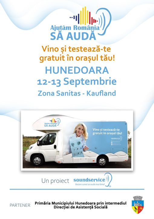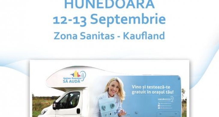 Pe 12 şi 13 septembrie, între orele 09.00 – 17.00, persoanele interesate pot beneficia de audiometrii gratuite în cadrul cabinetului mobil ce va fi amplasat pe zona pietonală Sanitas, spre parcarea Kaufland.