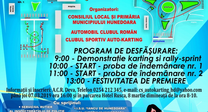 Primăria Municipiului Hunedoara, Automobil Clubul Român și Clubul Sportiv Auto-Karting organizează CAMPIONATUL JUDEȚEAN DE AUTOMOBILISM ȘI KARTING Hunedoara - Deva, CUPA 8 MARTIE HUNEDOARA