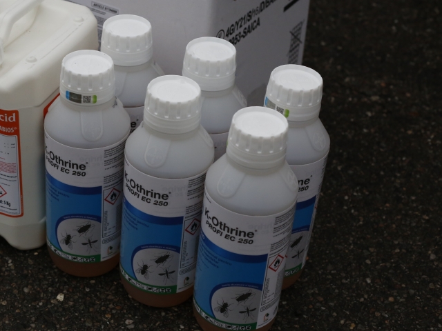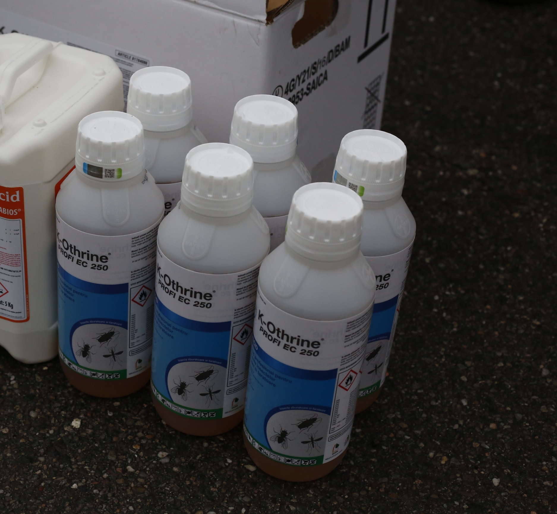 Produsele folosite sunt avizate de Ministerul Sănătății și fac parte din grupa de toxicitate III. Substanța utilizată în cadrul lucrărilor de dezinsecție este K-OTHRINE PROFI EC 250.