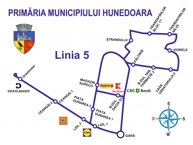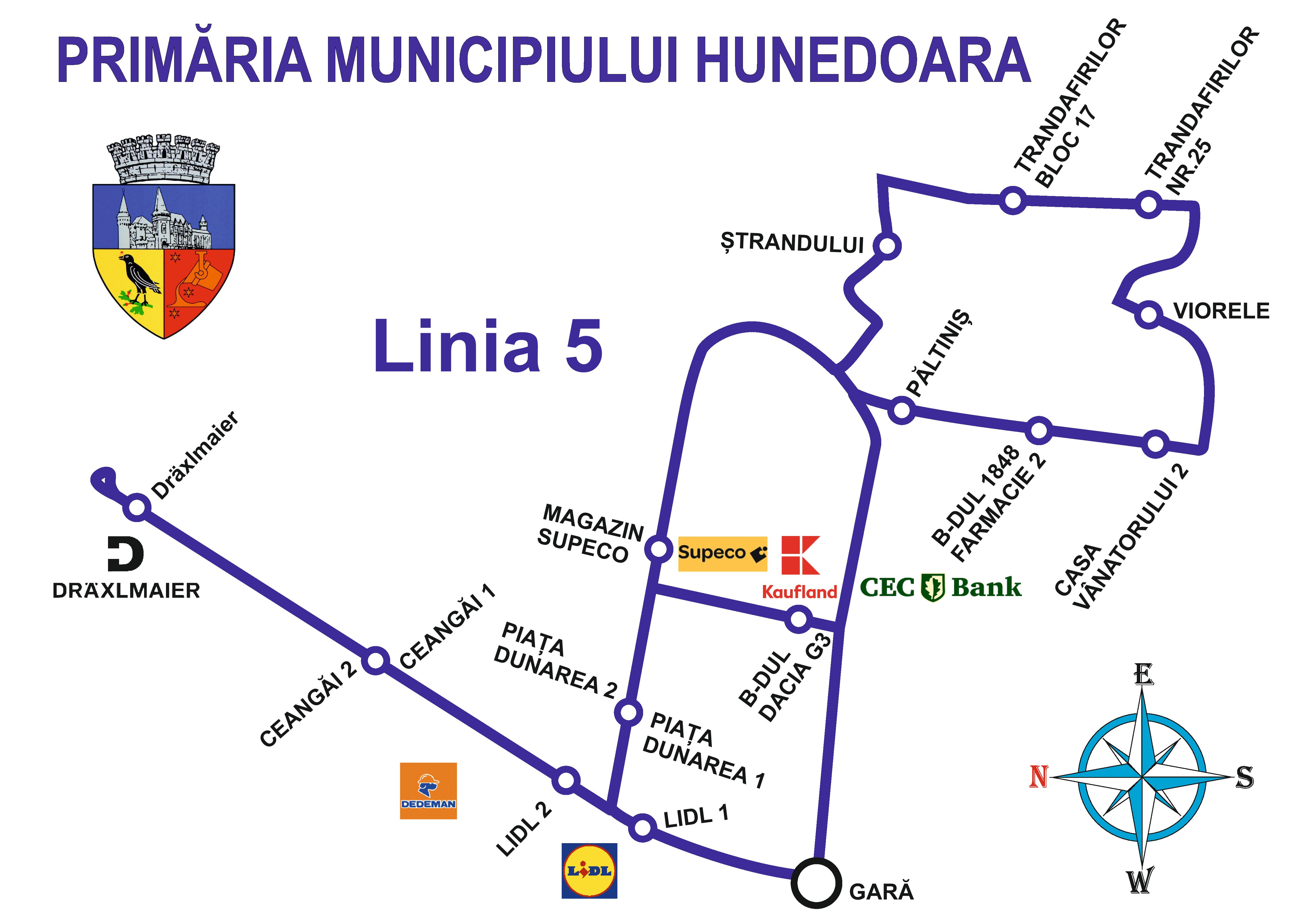 Primăria municipiului Hunedoara și operatorul de transport SC PRIM TRANSPREST HUNEDOARA anunță că pentru confortul călătorilor, va fi introdusă Linia 5, care va circula pe un traseu nou.