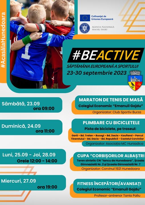 În municipiul Hunedoara, Săptămâna Europeană a Sportului cuprinde următoarele activități: