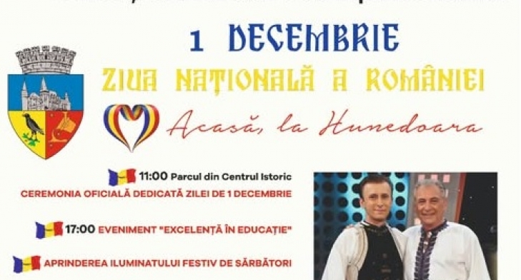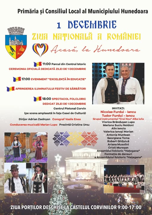Primăria şi Consiliul Local al municipiului Hunedoara vă invită să sărbătorim împreună ziua de 1 Decembrie!