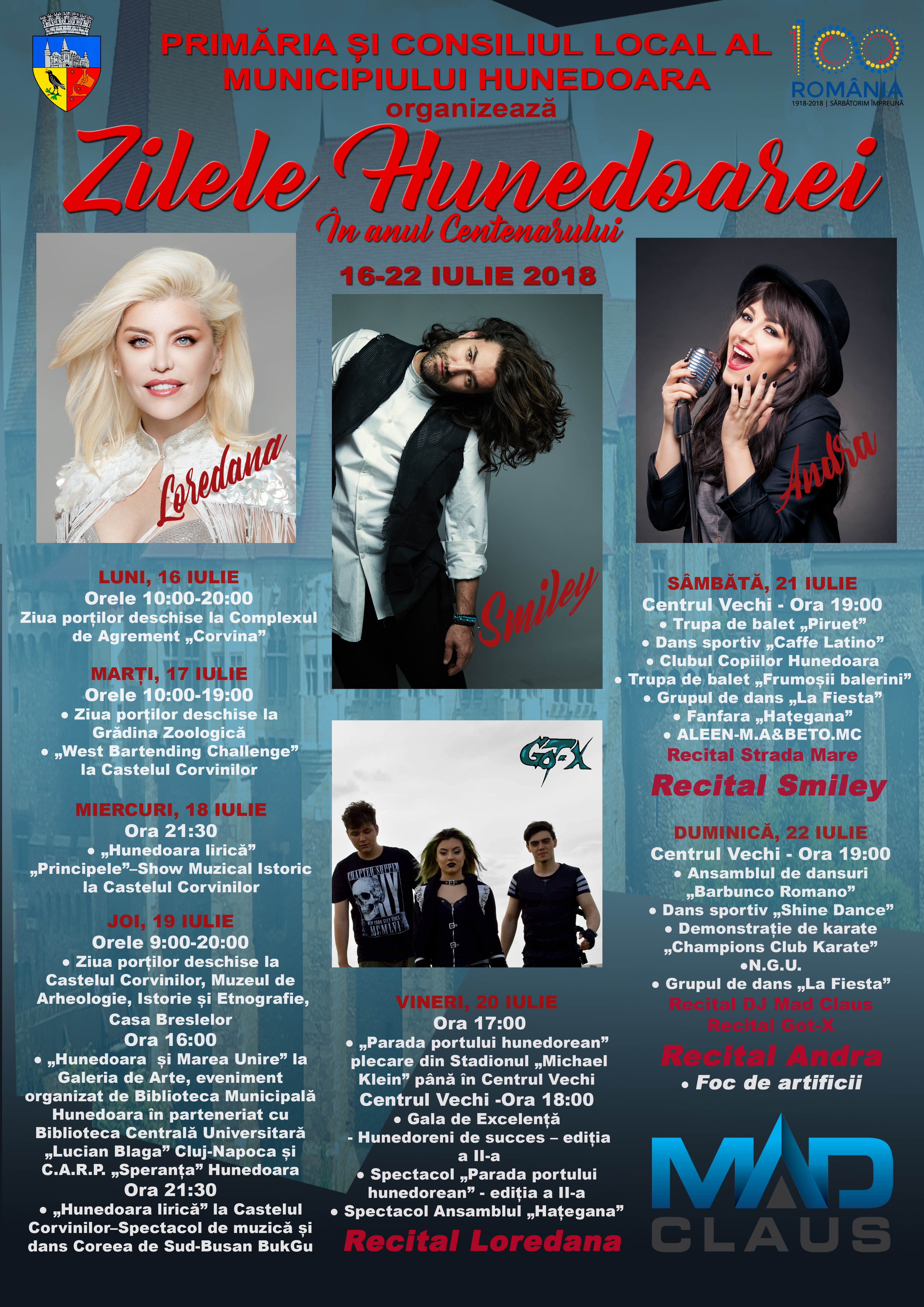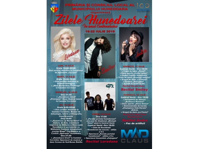 Anul acesta, Zilele Hunedoarei se vor desfășura în perioada 16-22 iulie. Vor fi activități diverse, concerte și spectacole.