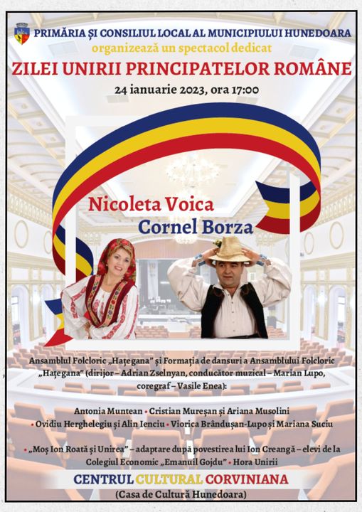 Anul acesta sărbătorim, împreuna Ziua Unirii Principatelor Române cu un spectacol folcloric organizat la Centrul Cultural Corviciana (Casa de Cultură Hunedoara)!