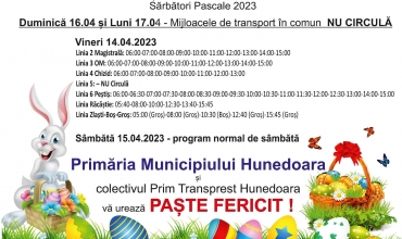 Programul transportului în comun, în perioada Sărbătorilor Pascale 2023
