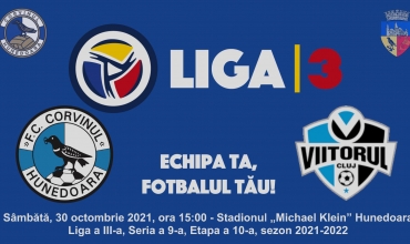 Simbata 30 oct 2021 , ora 15, stadionul Michael Klein Hunedoara, Liga a III-a, Seria a 9-a, Etapa a 10-a, Sezon 2021-2022