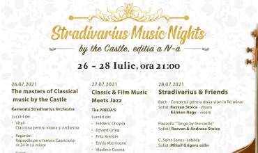 Programul Festivalului Stradivarius Music Nights , editia a IV-a. Biletele se gasesc la Agentia de bilete a Teatrului Deva si Centrul de Informare Turistica Hunedoara.